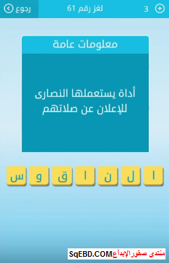 حل لغز اداة يستعملها النصارى للاعلان عن صلاتهم لغز رقم 61 للمجموعة السابعة من لعبة رشفة صقور الإبدآع