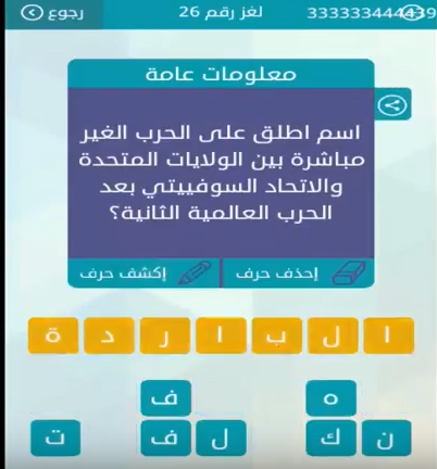 جواب اسم اطلق على الحرب الغير مباشرة بين الولايات المتحدة والاتحاد السوفيتى بعد الحرب العالمية الثان صقور الإبدآع