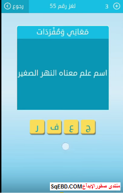 حل سؤال اسم علم معناه النهر الصغير من اللغز رقم 55 من لعبة رشفة للمجموعة السابعة صقور الإبدآع