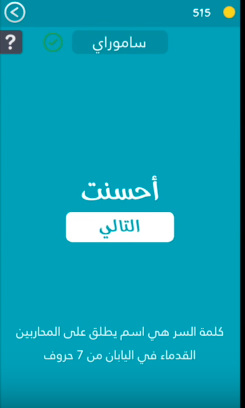 حل هى اسم يطلق على المحاربين القدماء فى اليابان مكونة من 7 حروف من لعبة كلمة السر 2 صقور الإبدآع