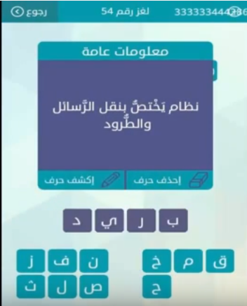 اجابة لغز نظام يختص بنقل الرسائل والطرود من لعبة وصلة فى المجموعة السادسة لغز رقم 54 صقور الإبدآع