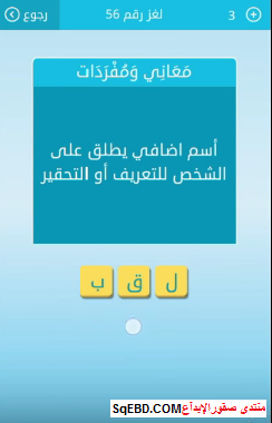 اجابة سؤال اسم اضافى يطلق على الشخص للتعريف او التحقير من اللغز رقم 56 من لعبة رشفة للمجموعة ا صقور الإبدآع