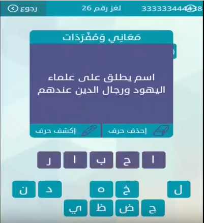 اجابة سؤال اسم يطلق على علماء اليهود ورجال الدين عندهم لغز رقم 26 من لعبة وصلة للمجموعة الثالثة صقور الإبدآع
