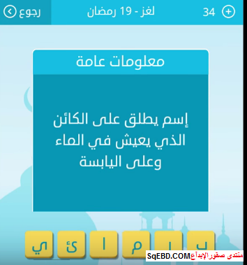 اجابة سؤال اسم يطلق علي الكائن الذي يعيش في الماء وعلي اليابسة من لغز 19 رمضان من لعبة رشفة رمضانية صقور الإبدآع