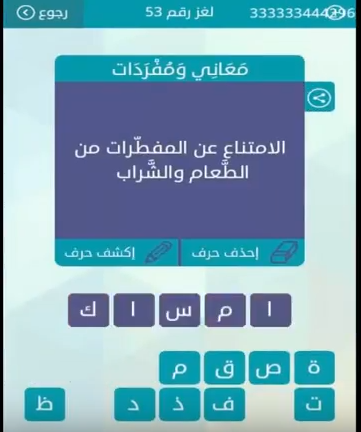 جواب لغز الامتناع عن المفطرات من الطعام والشراب من لعبة وصلة فى المجموعة السادسة لغز رقم 53 صقور الإبدآع