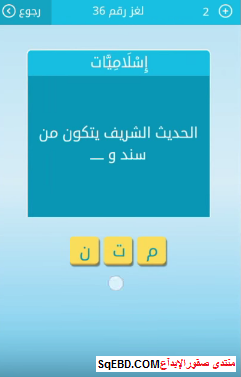 جواب لغز الحديث الشريف يتكون من سند و من لعبة رشفة لغز رقم 36 للمجموعة الرابعة صقور الإبدآع