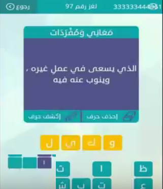 اجابة لغز الذى يسعى فى عمل غيره وينوب عنه فيه من لعبة وصلة المجموعة الحادية عشرة لغز رقم 97 صقور الإبدآع