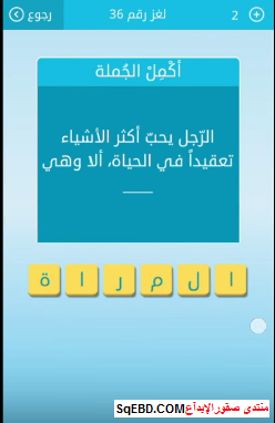 جواب لغز الرجل يحب اكثر الاشياء تعقيدا فىالحياة الا وهى من لعبة رشفة لغز رقم 36 للمجموعة الر صقور الإبدآع