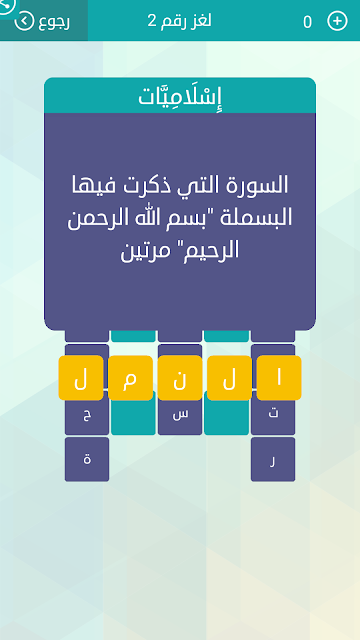 حل سؤال السورة التى ذكرت فيها البسملة بسم الله الرحمن الرحيم حل لغز رقم 2 من لعبة وصلة صقور الإبدآع