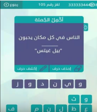 حل لغز الناس فى كل مكان يحبون بيل غيتس من لعبة وصلة لغز رقم 105 للمجموعة الثانية عشرة صقور الإبدآع