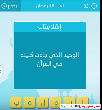 اجابة سؤال الوحيد الذي جاءت كنيته في القران من 6 حروفمن لغز 18 رمضان من لعبة رشفة رمضانية صقور الإبدآع