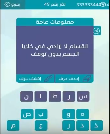 اجابة لغز انقسام لا ارادى فى خلايا الجسم بدون توقف لغز رقم 49 من لعبة وصلة فى المجموعة السادسة صقور الإبدآع