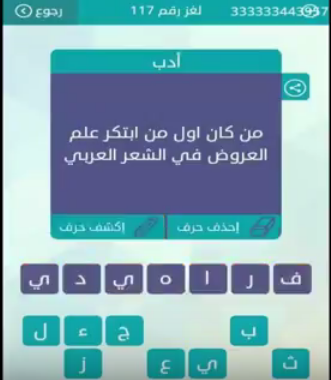 اجابة من كان اول من ابتكر علم العروض فى الشهر العربى رقم 117 من لعبة وصلة للمجموعة الثالثة عشرة صقور الإبدآع