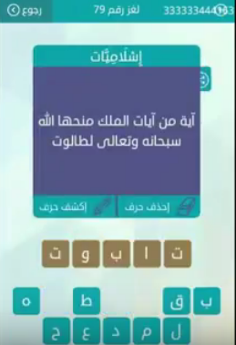 اجابة لغز اية من ايات الملك منحها الله سبحانه وتعالى لطالوت لغز رقم 79 من المجموعة التاسعة من لع صقور الإبدآع