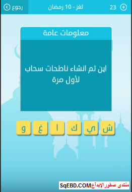 اجابة سؤال اين تم انشاء ناطحات سحاب لأول مرة من لغز 10 رمضان من لعبة رشفة رمضانية صقور الإبدآع