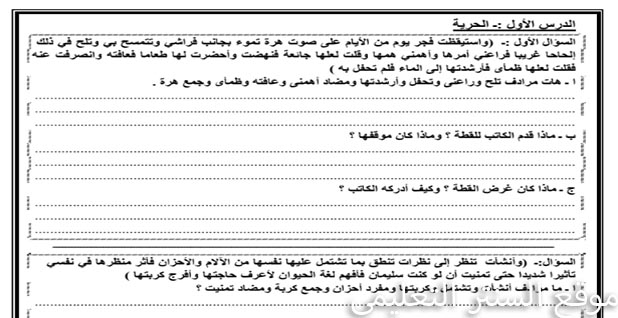 اسئلة الدرس الأول الحرية الوحدة الاولى من منهج اللغة العربية للصف الاول الاعدادى التيرم الاول واجابتها