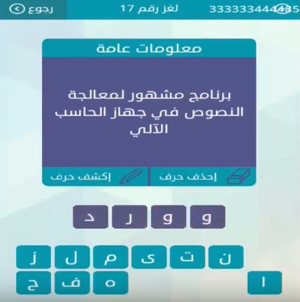 جواب برنامج مشهور لمعالجة النصوص فى جهاز الحاسب الآلى لغز رقم 17 من لعبة وصلة للمجموعة الثانية صقور الإبدآع