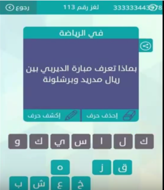 اجابة لغز بماذا تعرف مبارة الديريى بين ريال مدريد وبرشلونةرقم 113 من لعبة وصلة للمجموعة الثالثة صقور الإبدآع