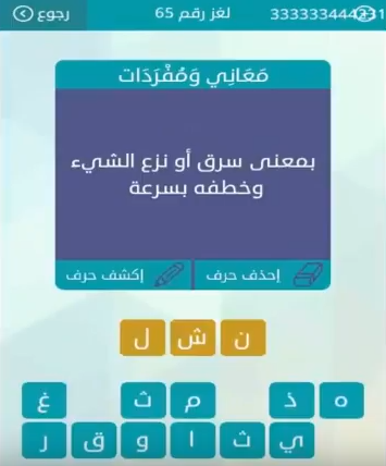 حل لغز بمعنى سرق او نزع الشيء وخطفه بسرعة من لعبة وصلة للمجموعة الثامنة لغز رقم 65 صقور الإبدآع