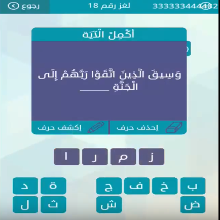 جواب سؤال وسيق الذين اتقوا ربهم الى الجنة لغز رقم 40 من لعبة وصلة للمجموعة الخامسة صقور الإبدآع
