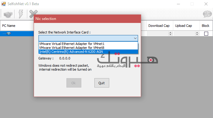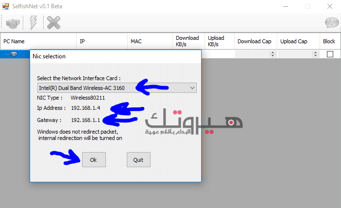 Dzblogging شرح بالصور لبرنامج Selfishnet لتحديد سرعة الانترنت للمتصلين بالراوتر وتقسيمها