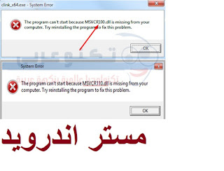 طرق حل مشكلة نقص ملف Msvcr100 Dll أو فقدان ملف Msvcr110 Dll لجميع نسخ الويندوز وعدم تشغيل الألعاب والبرامج