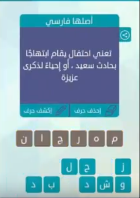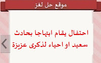 حل لغز تعنى احتفال يقام ابتهاجا بحادث سعيد او احياء لذكرى عزيزة من لعبة وصلة المجموعة الرابعة ل صقور الإبدآع