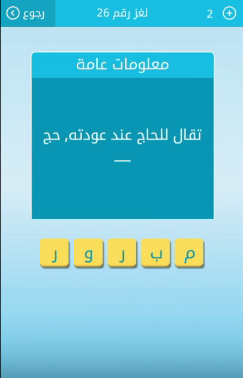 اجابة سؤال تقال للحاج عند عودته حج من لعبة رشفة لغز رقم 26 للمجموعة الثالثة صقور الإبدآع