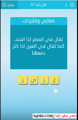 اجابة لغز تقال فى المطر اذا اشتد كما تقال فى العين اذا كثر دمعها لغز رقم 37 للمجموعة الخامسة من ل صقور الإبدآع