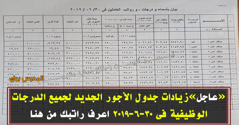 زيادات جدول الأجور الجديد لجميع الدرجات الوظيفية في 30 6 2019 اعرف راتبك من هنا