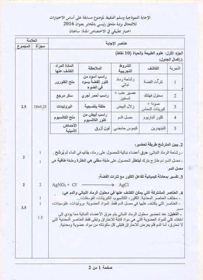 نماذج أسئلة امتحان ملحق رئيسي بالمخابر مع الاجابة النموذجية العلوم والتكنولوجيا
