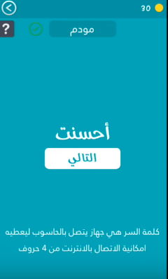 جواب هى جهاز يتصل بالحاسوب ليعطيه امكانية الاتصال بالانترنت من 4 حروف من لعبة كلمة السر 2