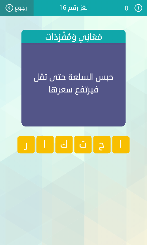 حل لغز معانى ومفردات حبس السلعة حتى تقل فيرتفع سعرها لغز رقم 25 من المجموعة الثالثة من لعبة وصلة صقور الإبدآع