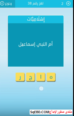 اجابة سؤال ام النبى اسماعيل لغز رقم 38 للمجموعة الخامسة من لعبة رشفة صقور الإبدآع