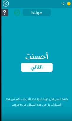 حل هى دولة فيها عدد الدراجات اكثر من عدد السيارات بل من عدد السكان من 6 حروف من لعبة كلمة السر 2 صقور الإبدآع