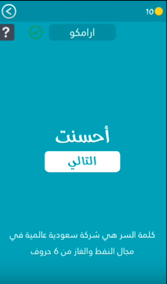 اجابة هى شركة سعودية عالمية فى مجال النفط والغاز من 6 حروف من لعبة كلمة السر 2 صقور الإبدآع