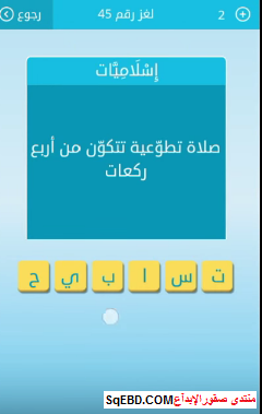 اجابة سؤال صلاة تطوعية تتكون من اربع ركعات من اللغز رقم 45 من لعبة رشفة للمجموعة الخامسة صقور الإبدآع