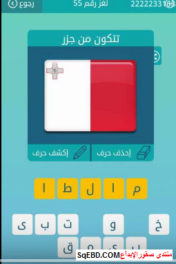 اجابة لغز تتكون من جزر من لغز رقم 55 من المجموعة السابعة من لعبة كلمات متقاطعة صقور الإبدآع