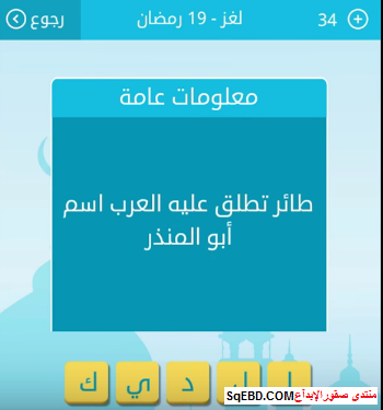بسم الله الرحمن الرحيم جواب سؤال طائر تطلق عليه العرب اسم ابو المنذر من 5 حروفمن لغز 19 رمضان من لعبة رشفة رمضانية متابعــــينا الاعزاء اسعد الله اوقاتكم وما زلت اتواصل معكم فى لعبة رشفة رمضانية كلمات متقاطعة مطورة وهى. طائر تطلق علية العرب اسم ابو المنذر نقدمه لكم اليوم عبر موقعنا زيادة حيث أن طائر تطلق عليه العرب أسم ابو المنذر قد تكون أول مرة ترد على سمعك معلومة أنه هناك طائر كانت تطلق عليه العرب أسم أبو المنذر والغريب والأكثر من. طائر تطلق علية العرب اسم ابو المنذر من 5 وصلة س ئل فبراير 22 2016 في تصنيف معلومات عامة بواسطة محمد السلمي معلومات. طائر تطلق عليه العرب ابن المنذر اهلا بكم في موقع نصائح من أجل الحصول على المساعدة في ايجاد معلومات دقيقة قدر الإمكان من خلال إجابات وتعليقات الاخرين الذين يمتلكون الخبرة والمعرفة بخصوص هذا السؤال التالي.