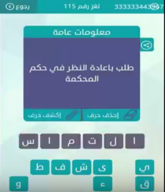 حل سؤال طلب باعادة النظر فى حكم المحكمة رقم 115 من لعبة وصلة للمجموعة الثالثة عشرة صقور الإبدآع