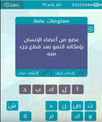 اجابة لغز عضو من اعضاء الانسان بامكانه النمو بعد قطع جزء منه من لعبة وصلة المجموعة الثامنة لغز ر