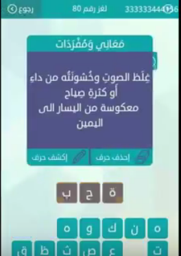 اجابة لغز غلط الصوت وخشونته من داء او كثرة صياح لغز رقم 80 من المجموعة التاسعة من لعبة وصلة صقور الإبدآع