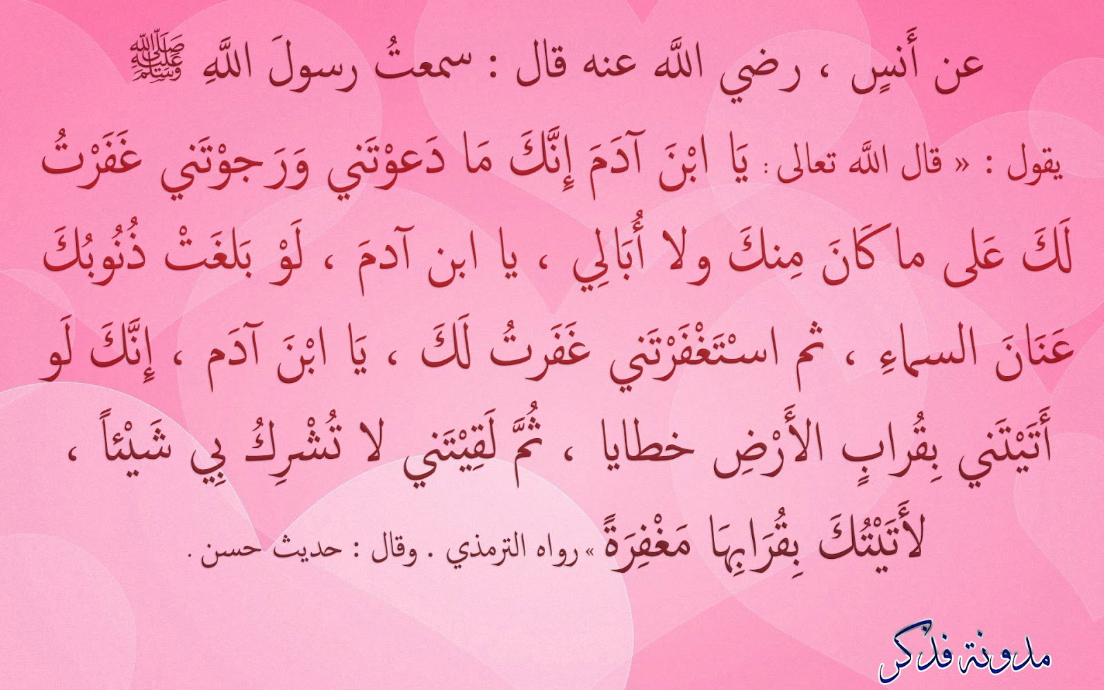 شرح الحديث القدسى الشريف يا ابن آدم إنك ما دعوتني ورجوتني من رياض الصالحين فذكر