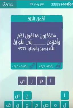 حل ستذكرون ما اقول لكم وافوض الى الله ان الله بصير بالعباد رقم 89 من لعبة وصلة للمجموعة العاش صقور الإبدآع