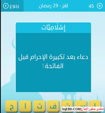 جواب سؤال دعاء بعد تكبيرة الاحرام قبل الفاتحة من 7 حروف 29 رمضان من لعبة رشفة رمضانية صقور الإبدآع