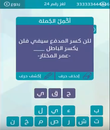 حل سؤال لان كسر المدفع سيفى فلن يكسر الباطل من لعبة وصلة المجموعة الثالثة لغز رقم 24 صقور الإبدآع