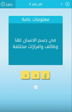 اجابة سؤال فى جسم الانسان لها وظائف وافرازات مختلفة من لعبة رشفة اللغز رقم 9 من المجموعة الاولى صقور الإبدآع