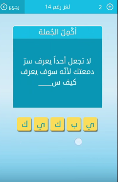 حل لغز لا تجعل احدا يعرف سر دمعتك لانه سوف يعرف كيف س من لعبة رشفة رقم 14 المجموعة الثانية صقور الإبدآع