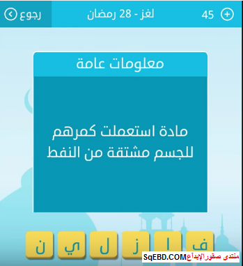 جواب سؤال مادة استعملت كمرهم للجسم مشتقة من النفط 28 رمضان من لعبة رشفة رمضانية صقور الإبدآع