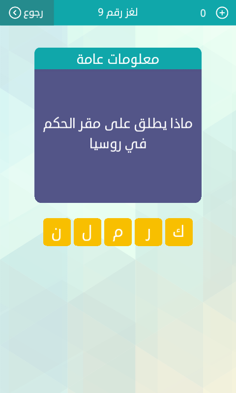 حل معلومات عامة ماذا يطلق على مقر الحكم في روسيا لغز رقم 9 من لعبة وصلة من المجموعة الاولى صقور الإبدآع